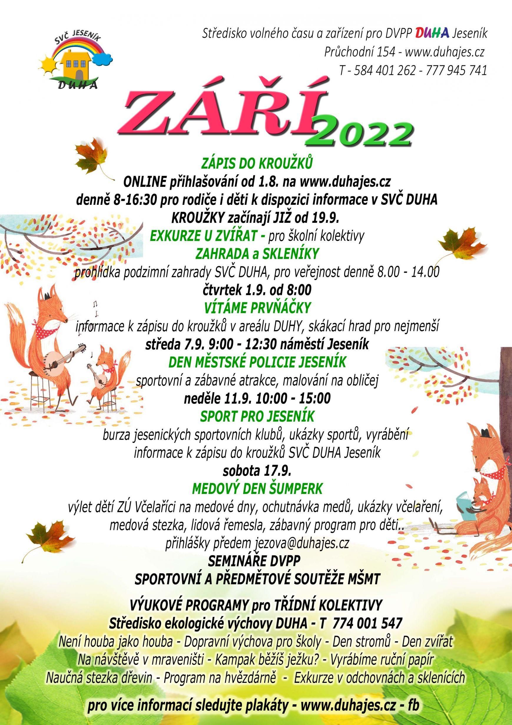Srdečně zveme děti, dospělé i školní kolektivy na zářijové akce DUHY. Stále se také můžete přihlašovat do kroužků.