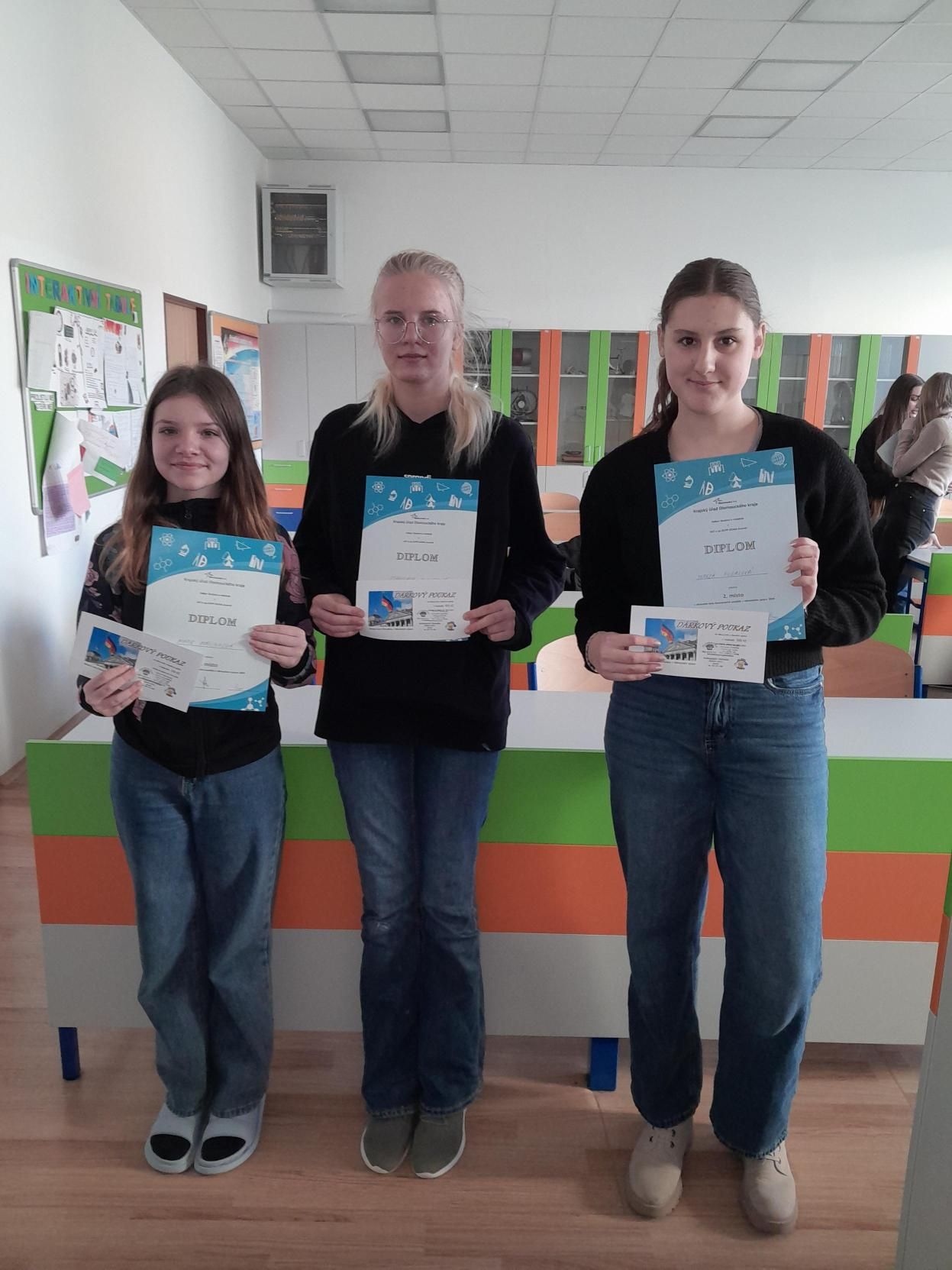 OK Konverzační soutěže v NJ 2024Soutěže v anglické konverzaci se zúčastnili žáci Gymnázia Jeseník v kategoriích VGI a VGII. Nejprve plnili úkoly poslechového testu a v druhé části soutěže hovořili se členy komise o tématu, které si vylosovali. Výkony všech studentů byly velmi kvalitní, odborná porota byla s výkony soutěžících velmi spokojena. Na prvních místech se umístili: Kubíčková Eliška, Le Anh Thu, Chasáková Viktorie, Plevačová Apolena, Němcová Dominik a, Štelclová Sofie. Gratulujeme! Dotace na soutěže byla poskytnuta z rozpočtu Olomouckého kraje a ze státního rozpočtu České republiky. Realizace soutěží byla podpořena Ministerstvem školství, mládeže a tělovýchovy. "0014/9/SOU/2024" |
